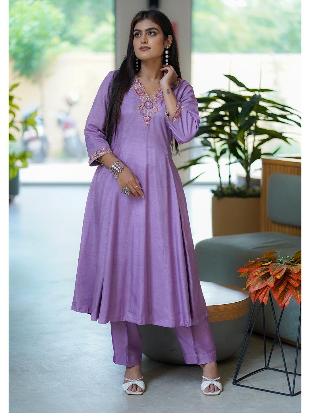 Timeless Dola Silk A-Line Dress (Princess Cut) with fine Khatli Work. Full three-piece set.